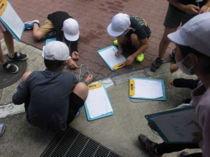 前庭の草むらから,コオロギ,バッタ,そして,カマキリを見つけて