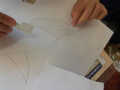材料の特徴を生かして,版のできあがりをイメージして作っていました。
