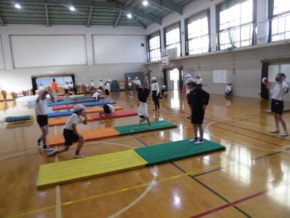 マット運動に取り組んでいます。