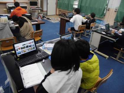 コンピュータルームで何やら調べています。