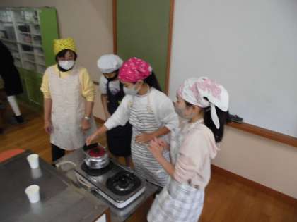 水の量をはかり,やかんでお湯をわかしました。