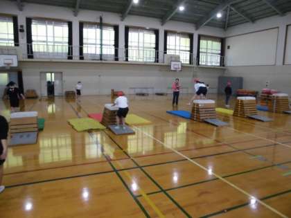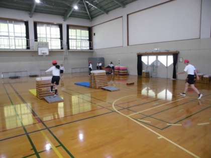 体育館でとび箱運動をしていました。