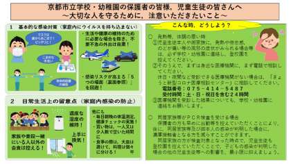 配布しております以下のお知らせをご確認いただき,感染対策を行っていただきたいと