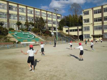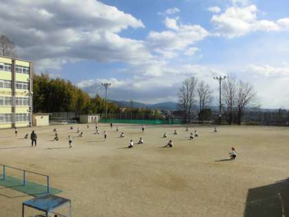 運動場で2年生が,なわとびをしていました。