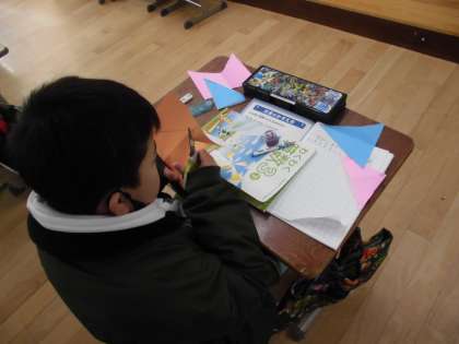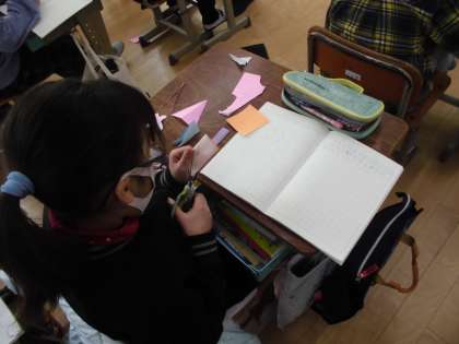 2つの三角形の角を調べるために,折り紙で,2つの三角形を