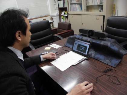校長室から,各教室のテレビにZOOMを使って配信されました。