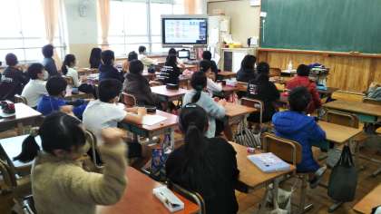 校長先生のプレゼンテーションソフトを使ったお話を一生懸命聞いていました。
