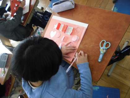 図画工作の学習で,窓をひらいての作品をつくっています。