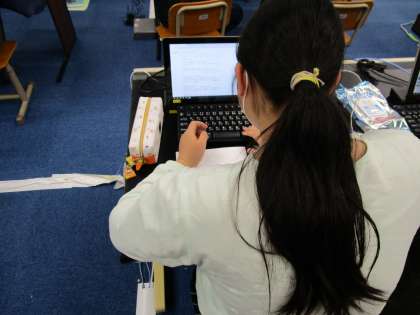 理科の時間に「生物と地球環境」を学習しています。今日は,生き物が生存する上で大切な地球環境をどのようにすれば,より一層地球環境を良くできるのかをタブレットを使って調べていました。