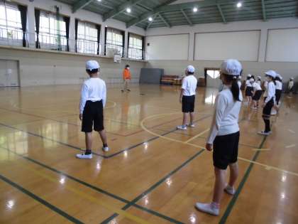 今日は,体育館で,体ほぐし運動をしました。