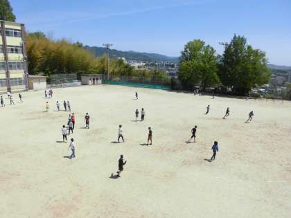 運動場で,楽しそうに過ごしていました。