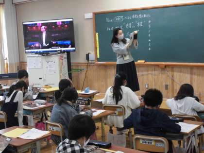 音楽のスクールサポーターの先生に指導をしていただいています。