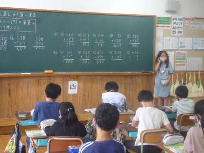3けた+3けたのたし算の答えの求め方を説明する際に,「まず」「次に」という言葉を使ったり「ここまでいですか」と,聞き手の様子を確認したりしながら一生懸命に説明をしていました。