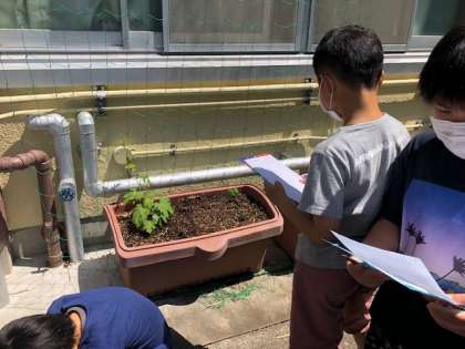 「子葉が豆みたい」「まきひげを見つけた」「葉の形が不思議」「アサガオとはちがう」など多くの発見をし,観察カードに記録しました。