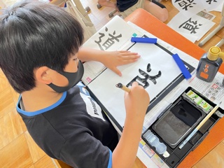 毛筆書写で「道」を練習しました。