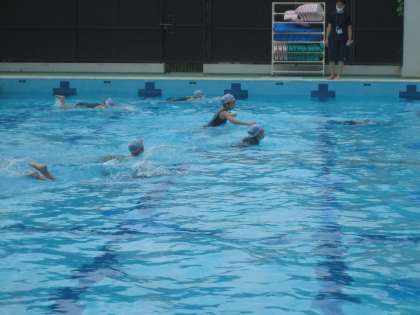 蹴のびをしたり,バタ足をしたり,何度か繰り返すうちに,少しずつ勘を取り戻したようです。今年はプールに入る回数が少ないですが,少しでも記録を伸ばすことができるように取り組んでいきます。