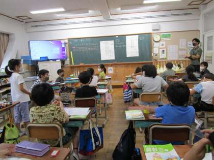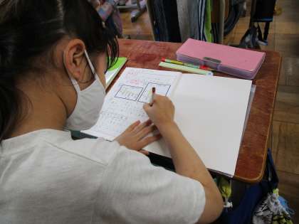 算数科で「表とグラフ」の学習をしている3年生。今日は,2つのグラフを比べ,どんな場合には,どんなグラフで表すことが効果的なのか考えました。自分の考えを発表し,交流し合ったり,友達の意見を取り入れながらノートにまとめたりして,学びを広げたり深めたりすることができました。