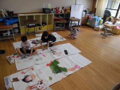 子どもたち,楽しみながら,がんばって彩色しています。