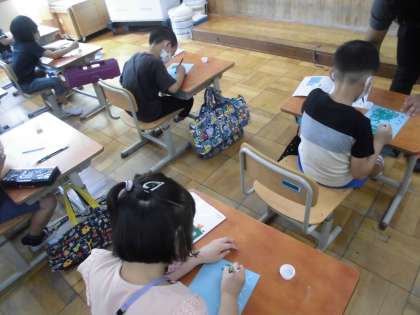 新たに,1,2年生で水書での毛筆をすることになっています。