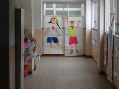 5組の一人一人が,がんばってかき上げた等身大の自分の絵が