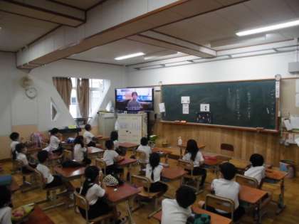 あらかじめ準備をした各委員会からの動画を教室で視聴し,
