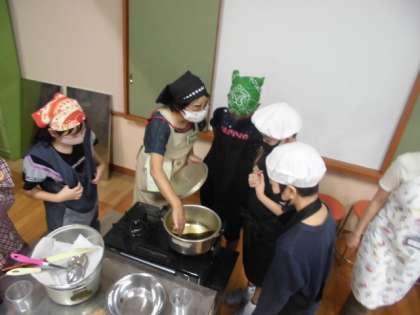 食育指導員さんにもお手伝いいただき,調理実習をしました。