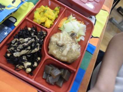 中学校の給食(お弁当)を食べました。
