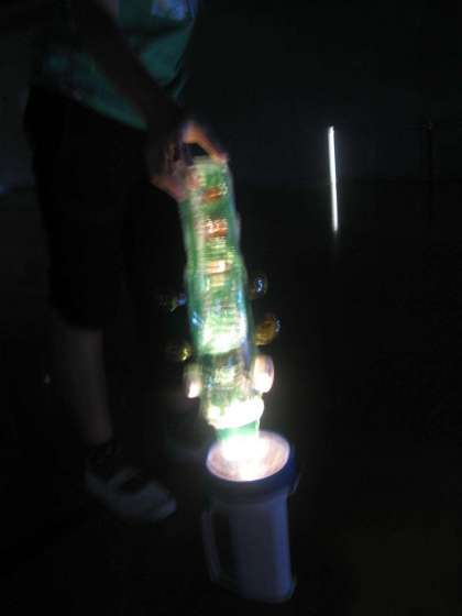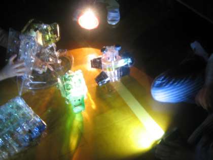 今日は,体育館にいって,電気を消し,「クリスタルアニマル」にライトを当てました。