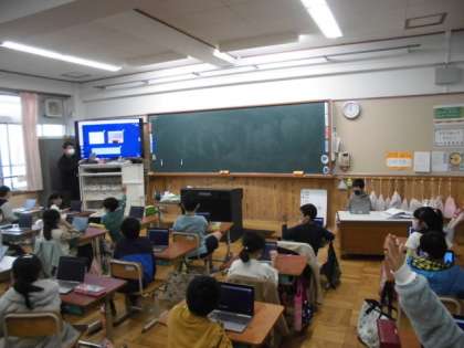 その時の黒板の記録写真を,先生がタブレットに送っていました。