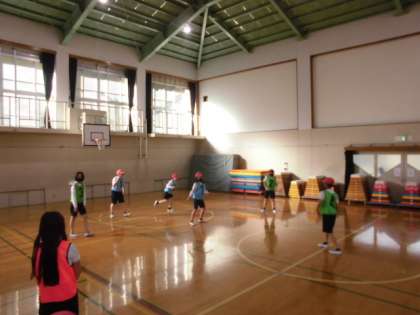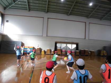 体育でのバスケットボールの学習。