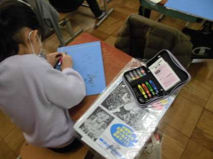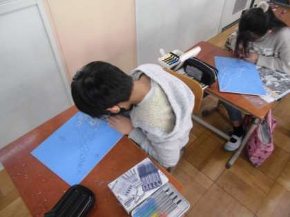 彫刻刀,安全に気をつけながら,彫っています。