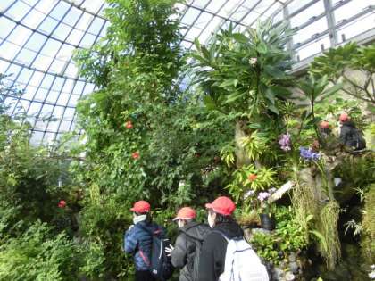 昆虫の大型模型や標本,温室にはたくさんのきれいな花や