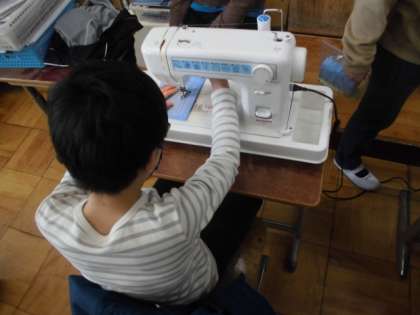 縫い終わると,子どもたち,ホッと一息・・・。