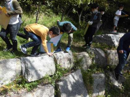 前庭で生き物を見つけたり,運動場に咲いている植物を観察したり