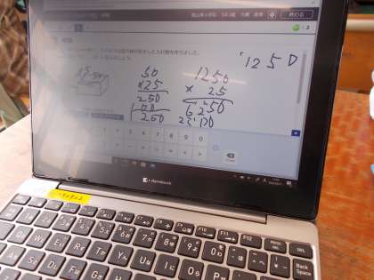 答えを入力すると正解か不正解かすぐにわかるので,「えっ,どこ?あーここ間違ったんか!!」とすぐに自分の間違いに気づくことができていました。間違った問題を自分で確認することもできるので戻って再度やり直しをする姿も見られました。