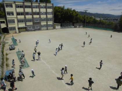 子どもたち,運動場で楽しく遊んでいました。