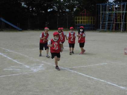 てつぼうあそびが終わり,新しくリレーあそびが始まりました。