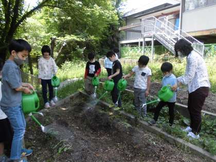 みんなで水をたっぷりあげて・・・おいしいおいもができますように!