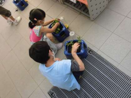 1年生が育てているあさがお。