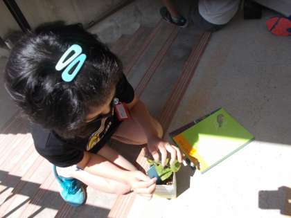 友達が見つけたことを,自分のツルレイシで確認し,また友達と共有する姿も見られました。