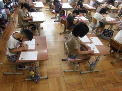 し〜んとした雰囲気の中で,ていねいに書いていました。
