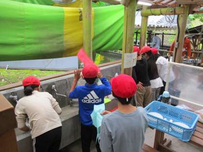 今日のお昼ご飯は野外炊事でカレーライスをつくります。