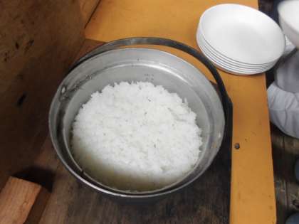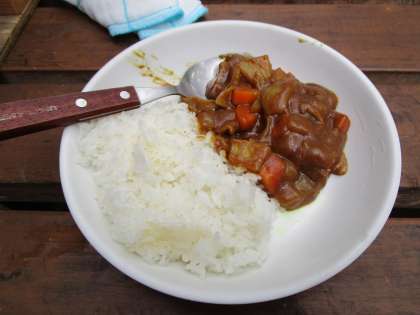 できあがったカレーと飯盒でたいたご飯。