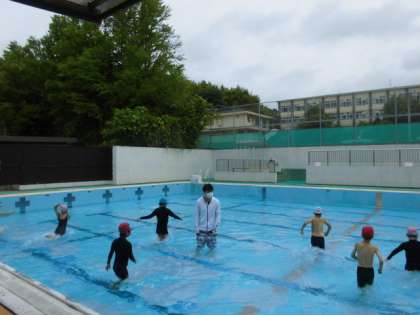 水遊びでプールに入りました。