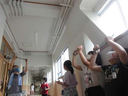 今日の図工は「ともだち見つけた」でした。学校内の色々な場所で、顔に見えるものをさがし、見つけた「ともだち」をクラスのみんなに紹介しました。名前を付けたり,それぞれの得意なことやどうしてそんな場所に隠れていたのかなどを考えて発表したり…。みんなのユニークな発想をきいて盛り上がりました。