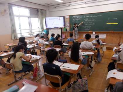算数「合同な図形」の学習で,三角形を描くときの頂点の決め方をみんなで考えました。自分の考えと友達の考えを照らし合わせながら聞き,頂点の決め方を整理することができました。