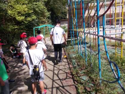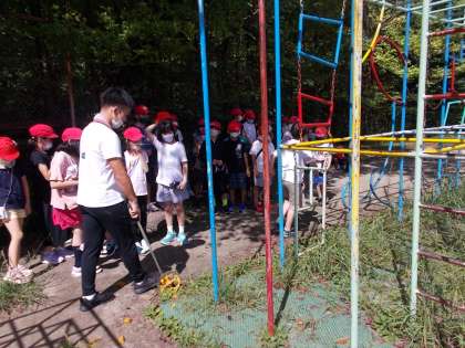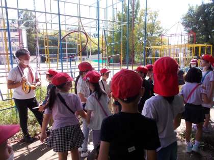 総合遊具の横の長さは1100cmでした。「mに直すと?」と聞かれてみんな一生懸命考えていました。