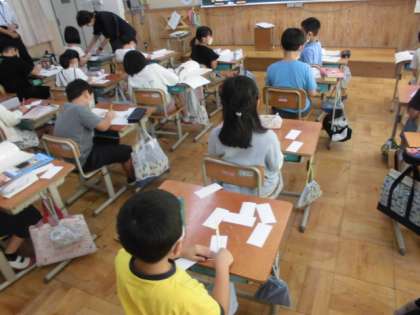 最後には、白紙のカードにへんとつくりを書きこみ