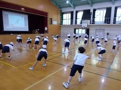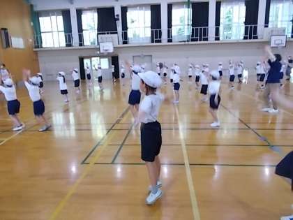 体育科学習発表会に向けて、体育館でダンスの練習をしました。