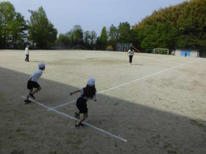 見ている子どもたちの声援を受けて、
